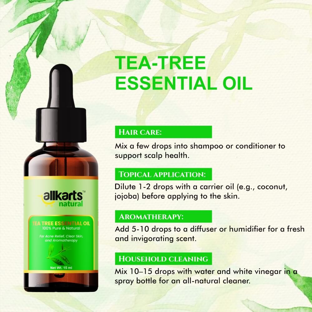 Experience the dual power of purification. Allkarts Tea Tree Essential Oil is precision-crafted to act as "Nature's Strongest Shield"—a potent botanical concentrate that clears your skin of impurities while purifying your environment through Aromatherapy.