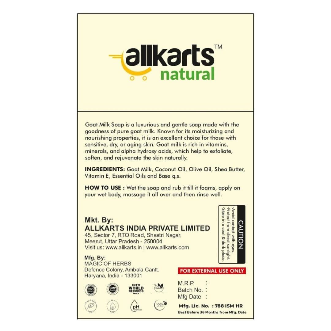 Pamper your skin with Allkarts Natural Goat Milk Soap. Enjoy the benefits of deep moisturization and soft, radiant skin every day. Shop now and experience natural skincare at its finest!